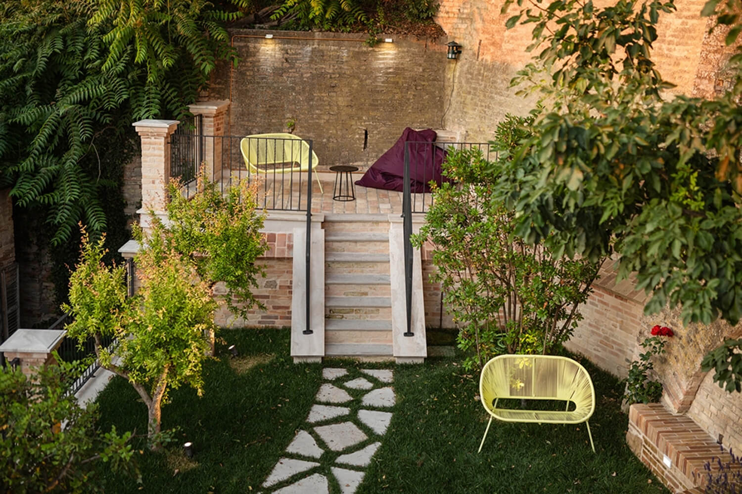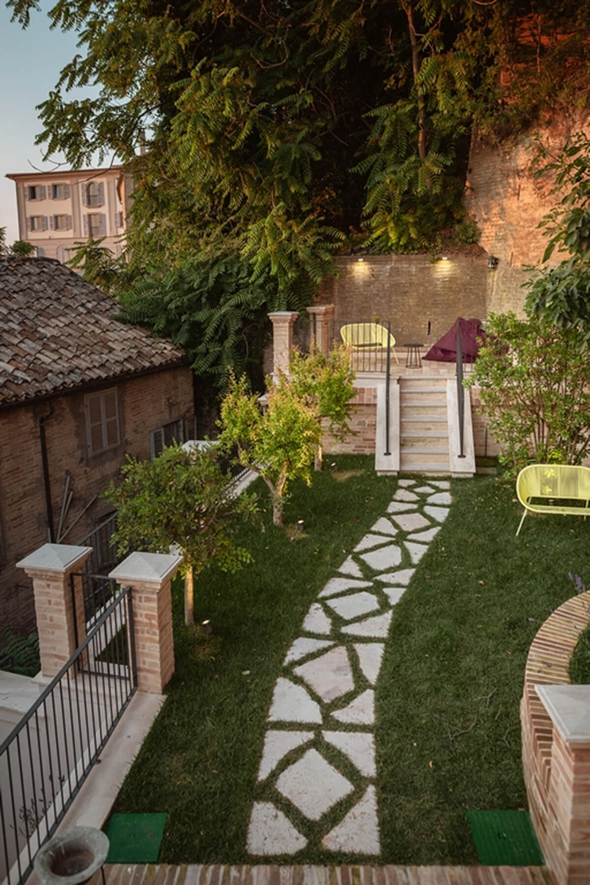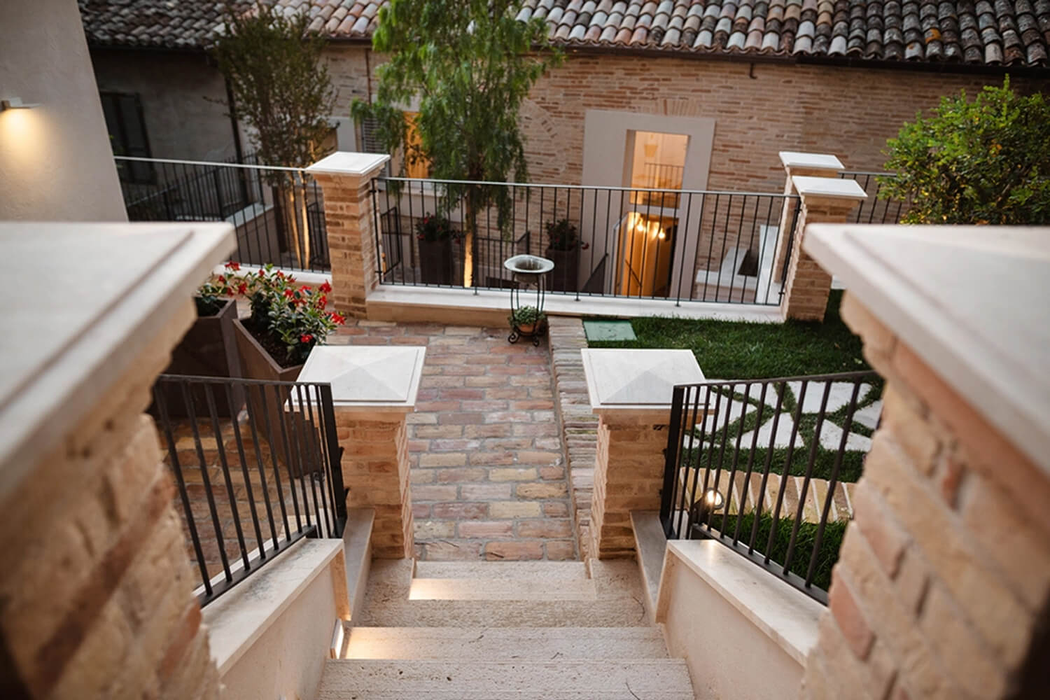 Sviluppandosi in vari livelli, La Dimora regala anche degli spazi conviviali da vivere nell’arco della giornata: Il giardino segreto, un angolo di pace e serenità, dove natura, storia, paesaggi e culture si intrecciano, dona all’ospite una vista a 360°, dai vicoli di fermo, al mare passando per le colline e arrivando fino ai Sibillini, mentre le grotte interne lo proiettano in un universo onirico dove potersi fermare a riflettere per regalarsi una pausa.