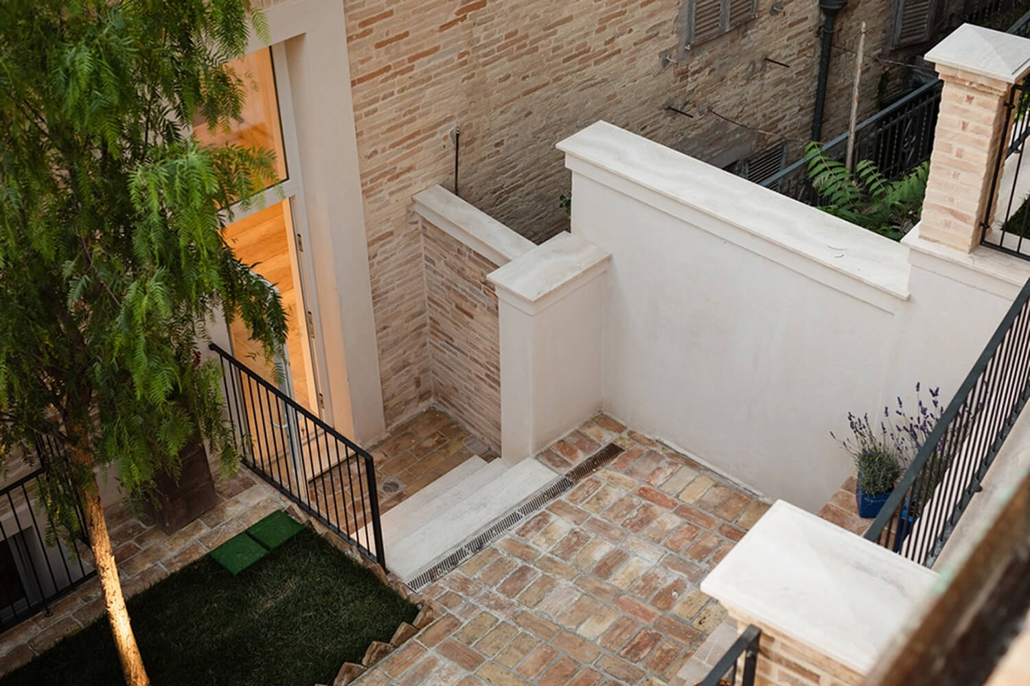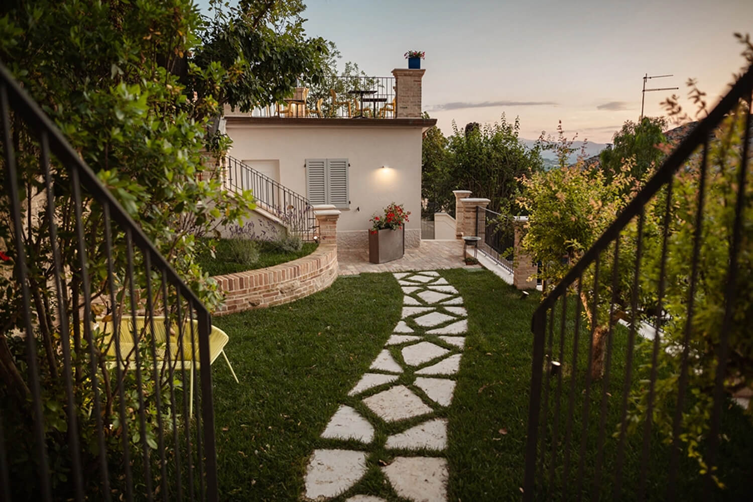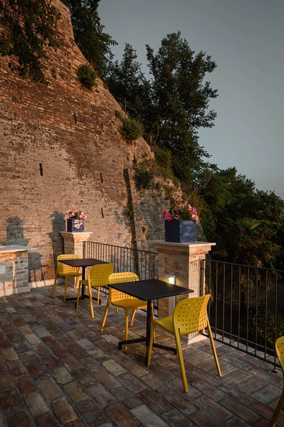 Sviluppandosi in vari livelli, La Dimora regala anche degli spazi conviviali da vivere nell’arco della giornata: Il giardino segreto, un angolo di pace e serenità, dove natura, storia, paesaggi e culture si intrecciano, dona all’ospite una vista a 360°, dai vicoli di fermo, al mare passando per le colline e arrivando fino ai Sibillini, mentre le grotte interne lo proiettano in un universo onirico dove potersi fermare a riflettere per regalarsi una pausa.